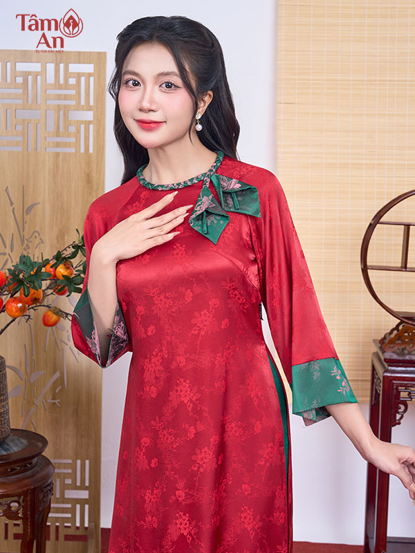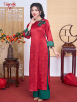 Được chế tác từ chất liệu lụa gấm nhập khẩu cao cấp, công nghệ dệt 2 mặt độc quyền, Áo dài Trường Hỷ mang vẻ đẹp sang trọng, mềm mại và bền đẹp theo thời gian. Gam màu đỏ biểu tượng của may mắn, bình an, giúp các quý cô nổi bật trong những sự kiện quan trọng, lễ Tết hay chụp ảnh đội nhóm, lễ chùa