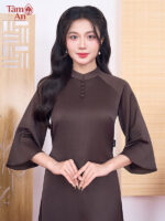 Áo dài Minh Y cao cấp từ Pháp Phục Tâm An sử dụng chất liệu lụa nhập khẩu độc quyền, mang đến cảm giác thoải mái, thoáng mát khi mặc cả ngày. Gam màu nâu trầm Phật giáo giúp người mặc toát lên sự thanh tịnh, trang nghiêm nhưng vẫn sang trọng và cuốn hút.