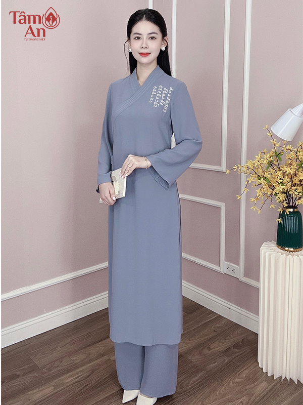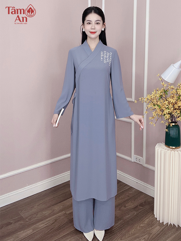 Nằm trong BST áo tràng mới nhất tại Tâm An, thiết kế áo tràng thêu kinh được các nghệ nhân tại Tâm An nghiên cứu, cải thiện về form dáng và cách mặc so với các thiết kế áo tràng cũ, mang lại vẻ đẹp thanh tịnh và trải nghiệm tốt hơn đến quý khách hàng.